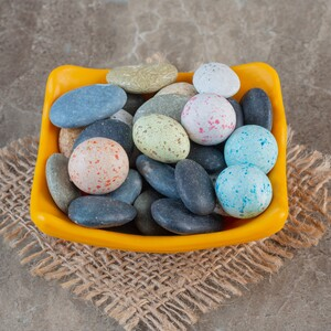 ごつごつ、トゲトゲした石たち。ぶつかり摩擦を繰り返すうちに、角が取れてまあるくなっていきます。感情も丸くしていきましょう。
